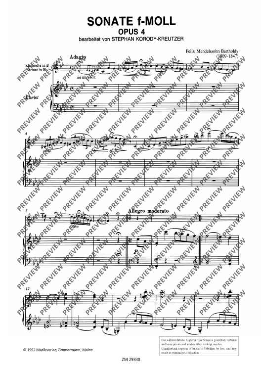 "Sonata F Minor" Sheet Music by Felix Mendelssohn Bartholdy