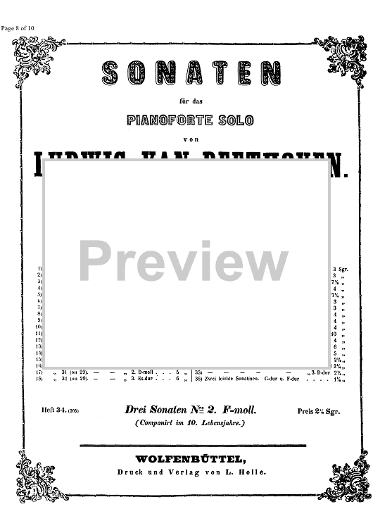 Digital Sheet Music for Sonata f minor WoO 47 No. 2 - Piano by , Ludwig van Beethoven scored for Piano Solo; id:333045