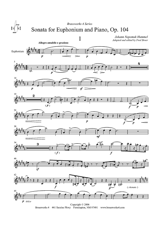 "Sonata for Euphonium and Piano, Op. 104 - Euphonium TC" Sheet Music by Johann Nepomuk Hummel