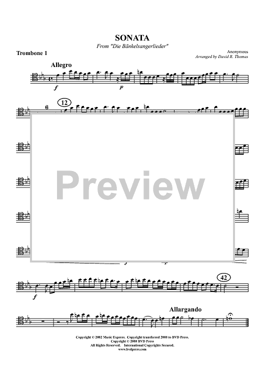 Digital Sheet Music for Sonata from "Die Bänkelsangerlieder" - Trombone 1 by David R. Thomas, Anonymous scored for Trombone Quartet; id:411964