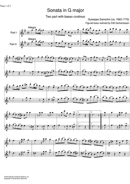 Digital Sheet Music for Sonata G Major by Giuseppe Sammartini, Eilif Zachariassen scored for 2 Instruments/Continuo; id:324947