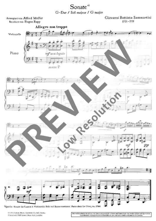 "Sonata G Major" Sheet Music by Giovanni Battista Sammartini