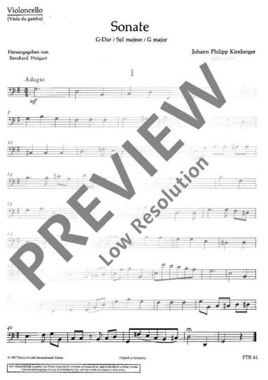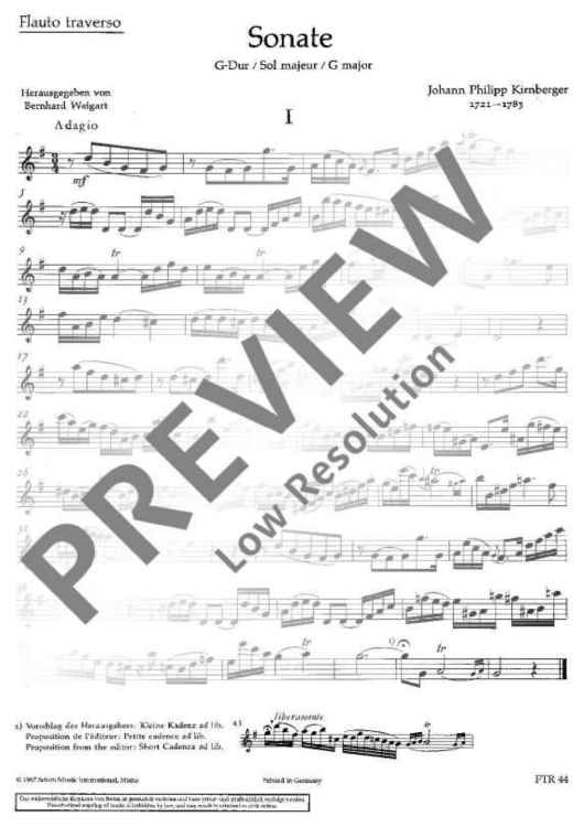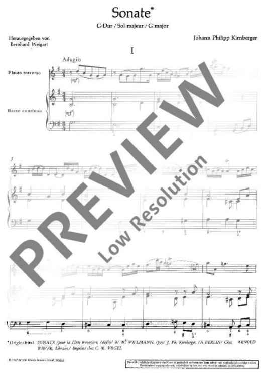 "Sonata G Major" Sheet Music by Johann Philipp Kirnberger