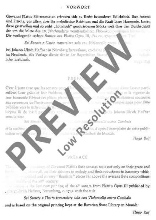 Giovanni Plattis Flötensonaten erfreuen sich zu Recht besonderer Beliebtheit. Ihre Anmut und Frische, vor allem aber ihr melodischer Reichtum und die Kraft ihrer Harmonie lassen diese geistvollen und so recht "flötistisch" geschriebenen Stücke weit über den Durchschnitt der um die Mitte des 18. Jahrhunderts veröffentlichten Flötenkompositionen hinausragen.