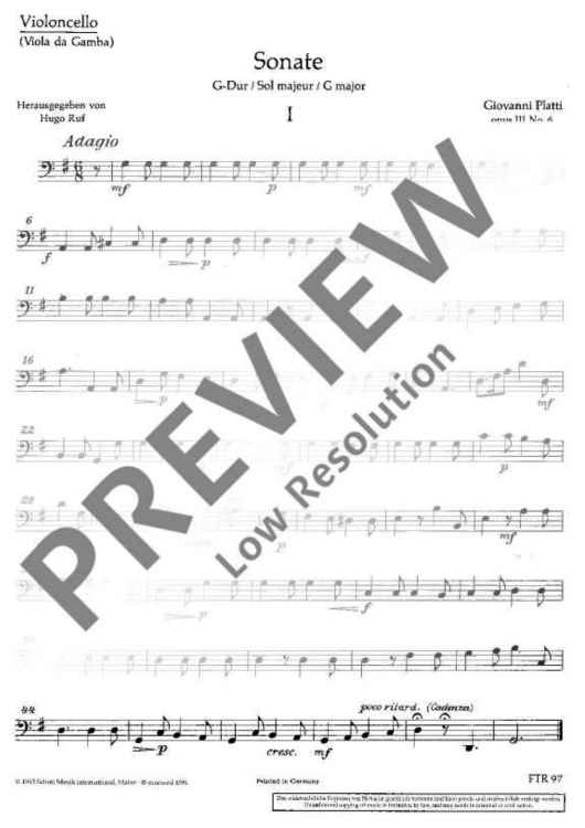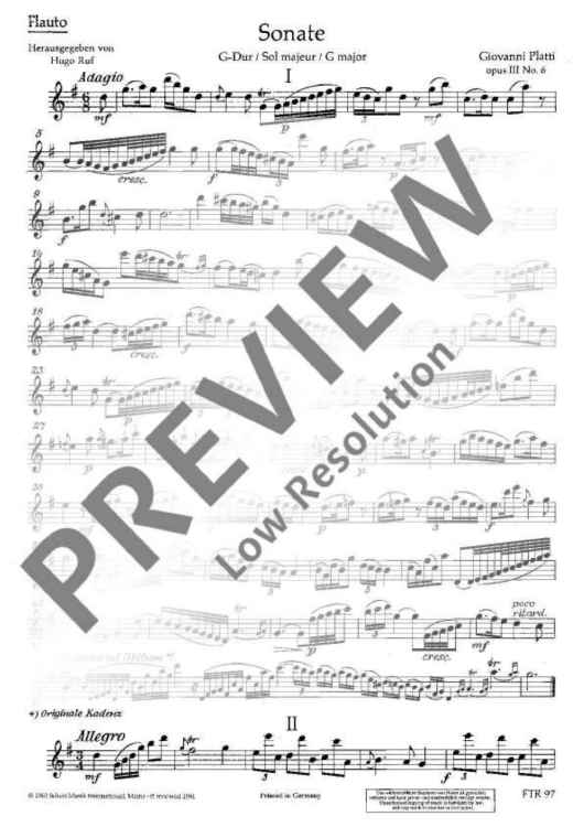 "Sonata G Major" Sheet Music by Giovanni Benedetto Platti