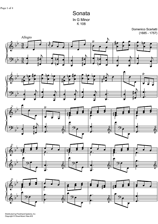Digital Sheet Music for Sonata g minor K108 by Domenico Scarlatti scored for Keyboard; id:323117