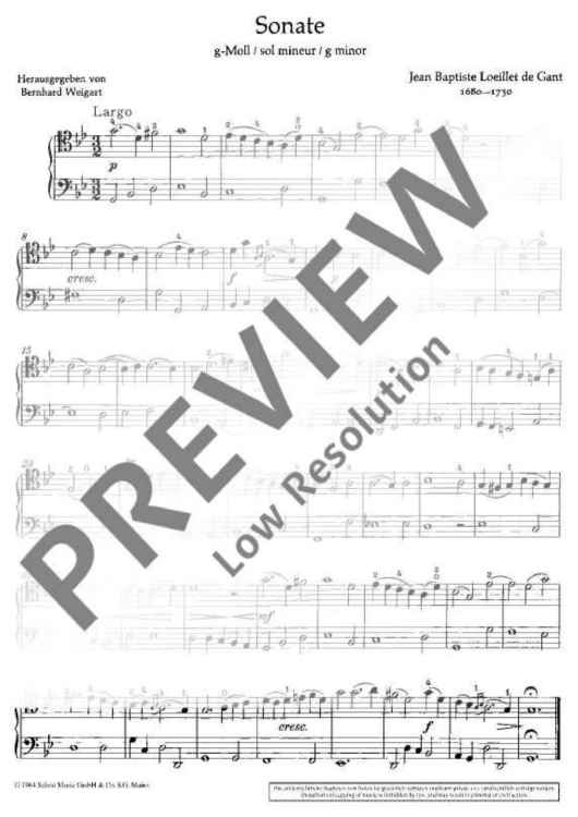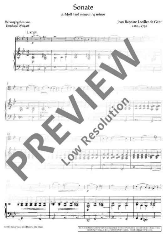 "Sonata g minor" Sheet Music by Jean Baptiste Loeillet de Gant
