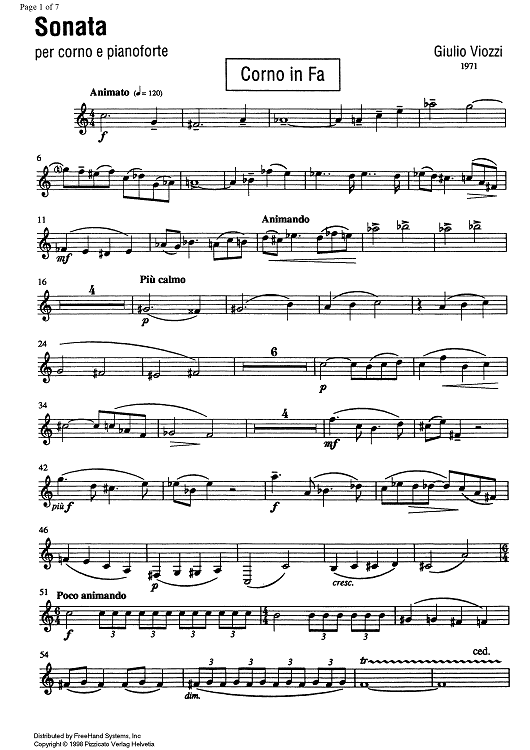 "Sonata - Horn in F" Sheet Music by Giulio Viozzi