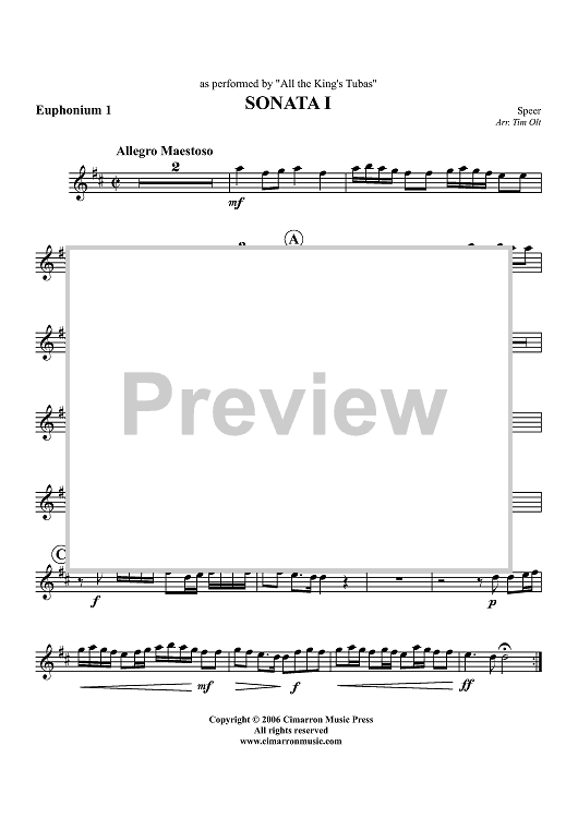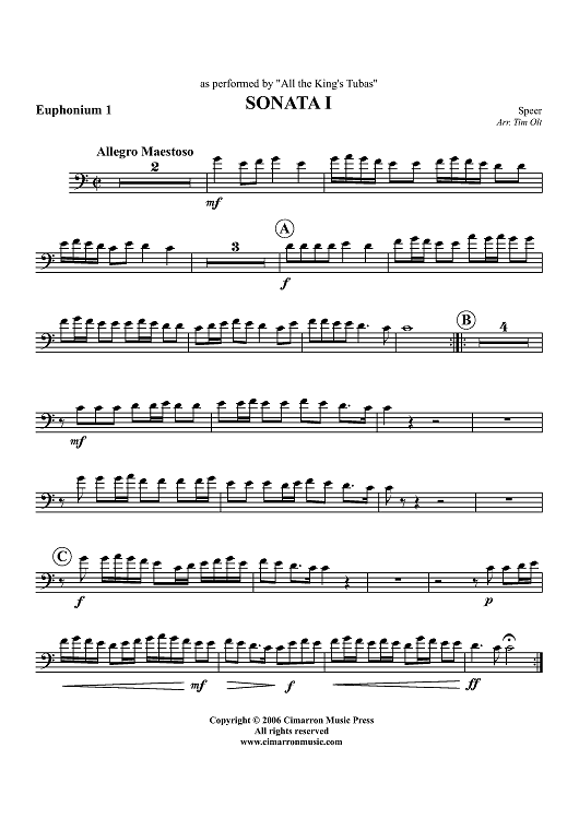 Digital Sheet Music for Sonata I - Euphonium 1 BC/TC by Tim Olt, Georgy Daniel Speer, All the King's Tubas scored for Tuba Quartet; id:319963