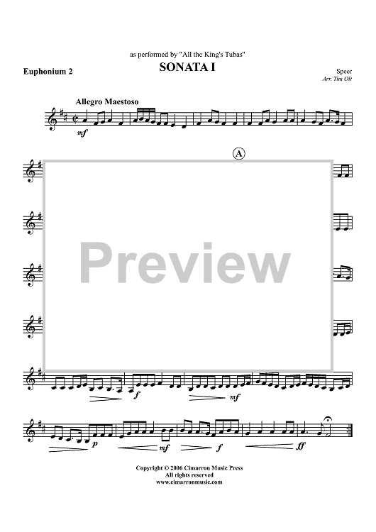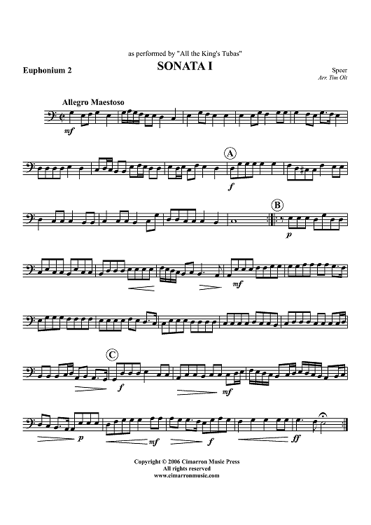 Digital Sheet Music for Sonata I - Euphonium 2 BC/TC by Tim Olt, Georgy Daniel Speer, All the King's Tubas scored for Tuba Quartet; id:319964
