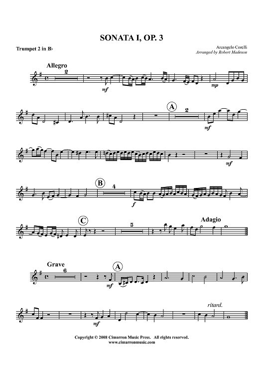 Digital Sheet Music for Sonata I, Op. 3 - Trumpet 2 in Bb by Arcangelo Corelli, Robert Madeson scored for Brass Quintet; id:416983