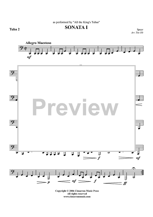 Digital Sheet Music for Sonata I - Tuba 2 by Tim Olt, Georgy Daniel Speer, All the King's Tubas scored for Tuba Quartet; id:319966