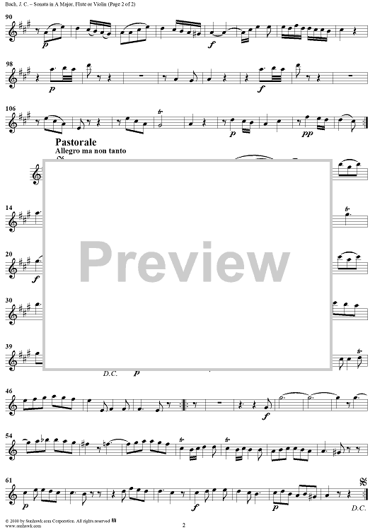 Digital Sheet Music for Sonata in A Major, Op. 16, No. 4 - Flute by Johann Christian Bach scored for Flute/Piano; id:275919
