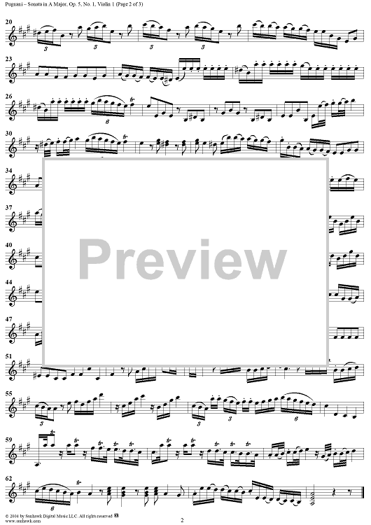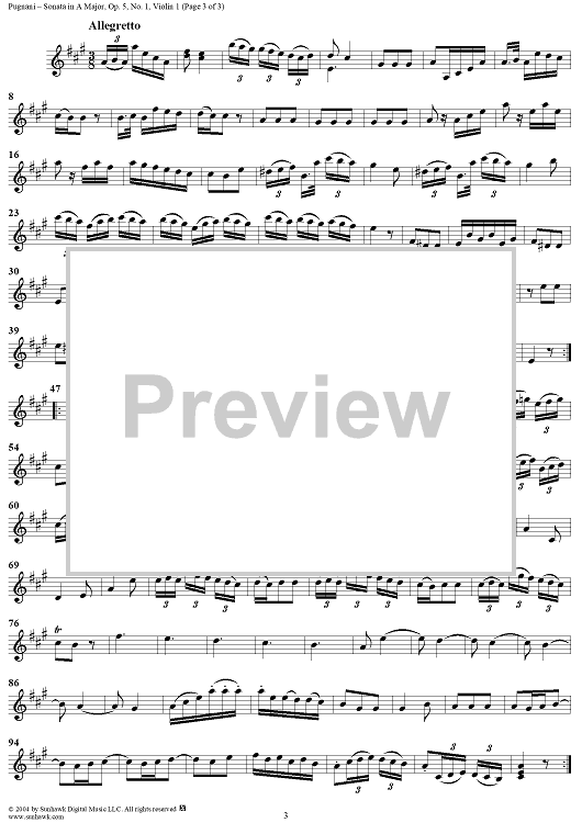 "Sonata in A Major, Op. 5, No. 1 - Violin 1" Sheet Music by Gaetano Pugnani