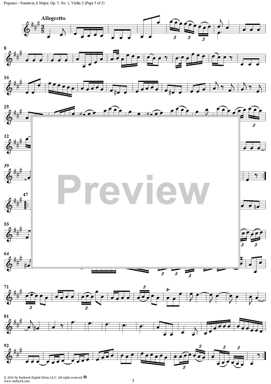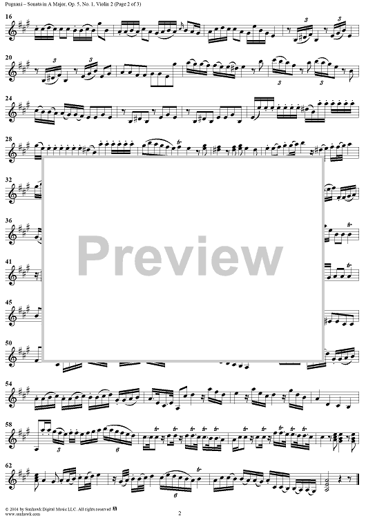 "Sonata in A Major, Op. 5, No. 1 - Violin 2" Sheet Music by Gaetano Pugnani