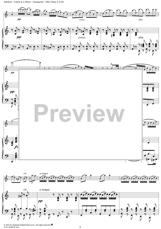 Digital Sheet Music for Sonata in A minor "Arpeggione" - Piano by Franz Schubert scored for Viola/Piano; id:184004