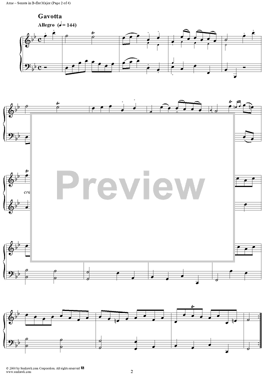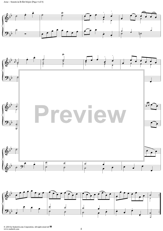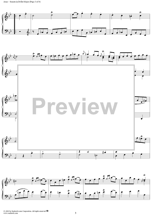 Digital Sheet Music for Sonata in B flat major by Thomas Arne scored for Piano Solo; id:277081