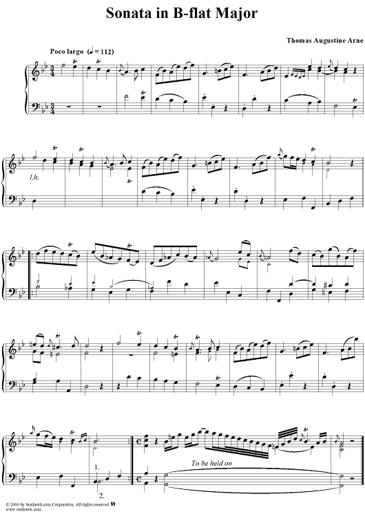 "Sonata in B flat major" Sheet Music by Thomas Augustine Arne