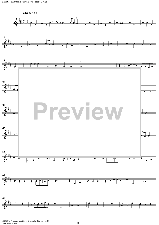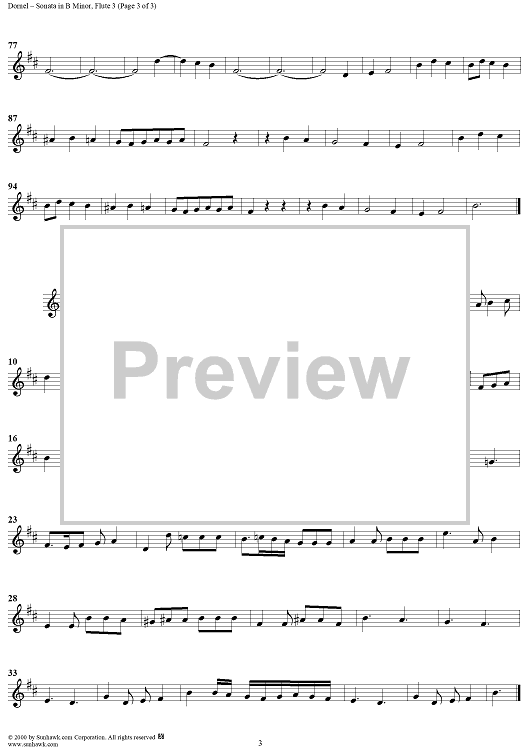 Digital Sheet Music for Sonata in B Minor, Op. 3, No. 7 - Flute 3 by Louis-Antoine Dornel scored for 3 Flutes; id:202215