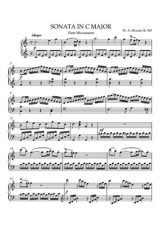 Digital Sheet Music for Sonata in C Major, K. 545, First Movement by Wolfgang Amadeus Mozart scored for Piano; id:370010
