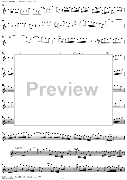 "Sonata in C Major - Recorder (F)/Flute/Violin" Sheet Music by George Frideric Handel