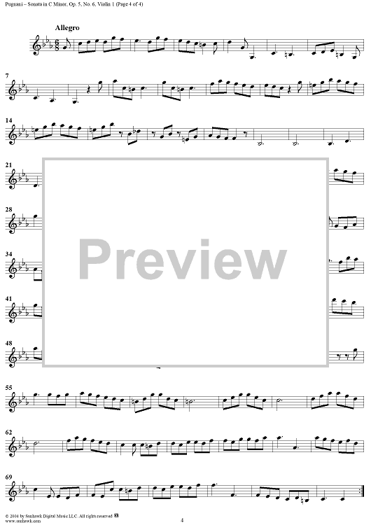"Sonata in C Minor, Op. 5, No. 6 - Violin 1" Sheet Music by Gaetano Pugnani