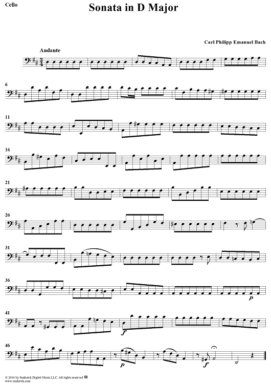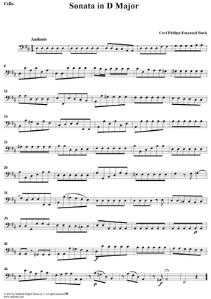 "Sonata in D Major - Cello" Sheet Music by Carl Philipp Emanuel Bach