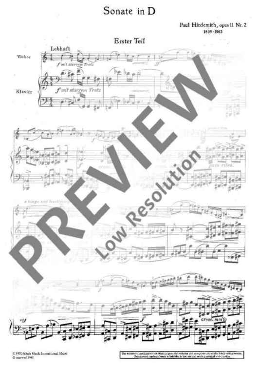 Digital Sheet Music for Sonata in D Major by Paul Hindemith scored for Violin And Piano; id:472515