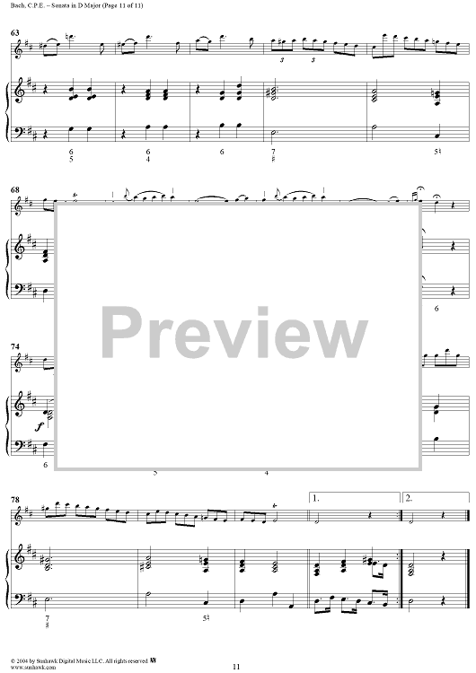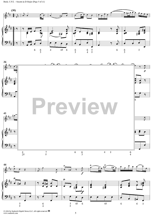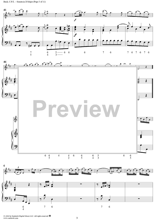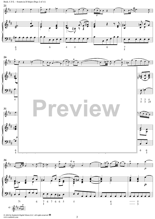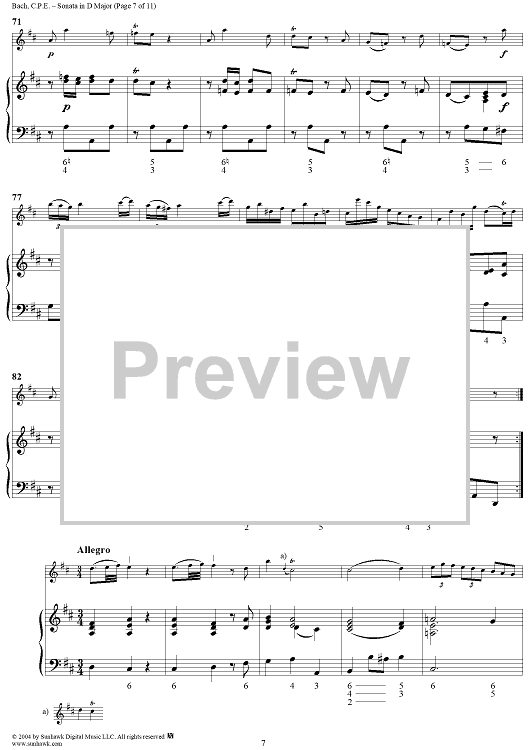 Digital Sheet Music for Sonata in D Major - Piano by Carl Philipp Emanuel Bach scored for Flute/Piano/Cello; id:303655