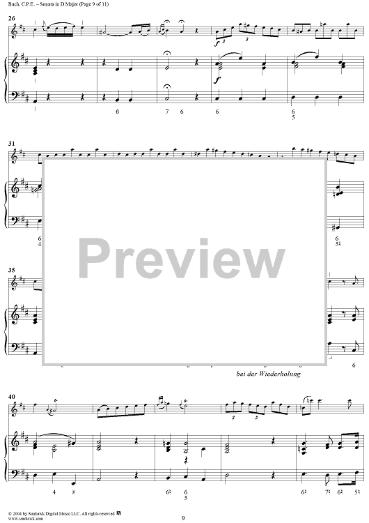 "Sonata in D Major - Piano" Sheet Music by Carl Philipp Emanuel Bach