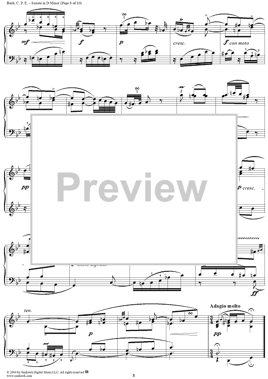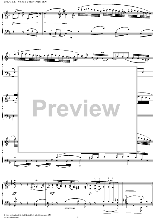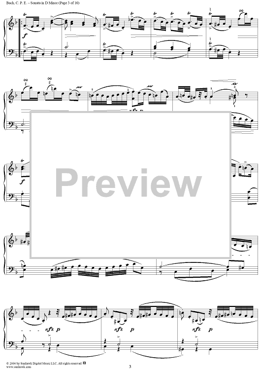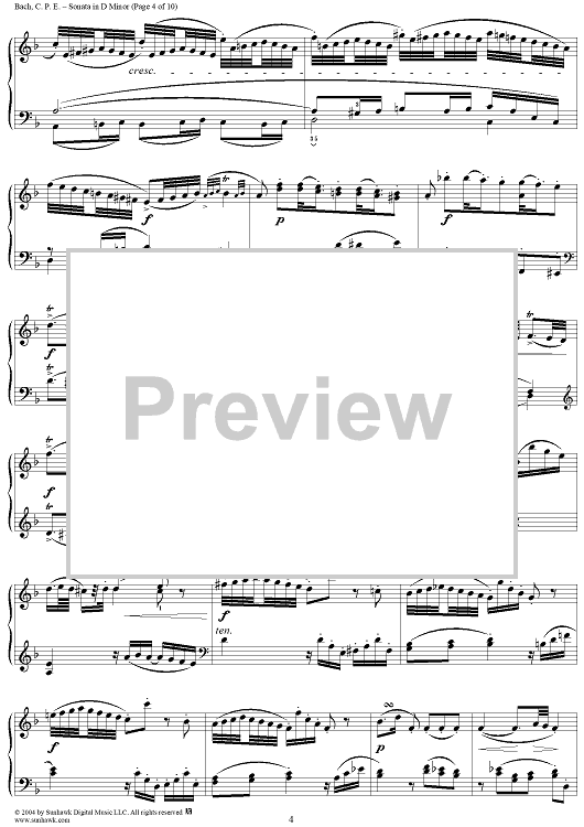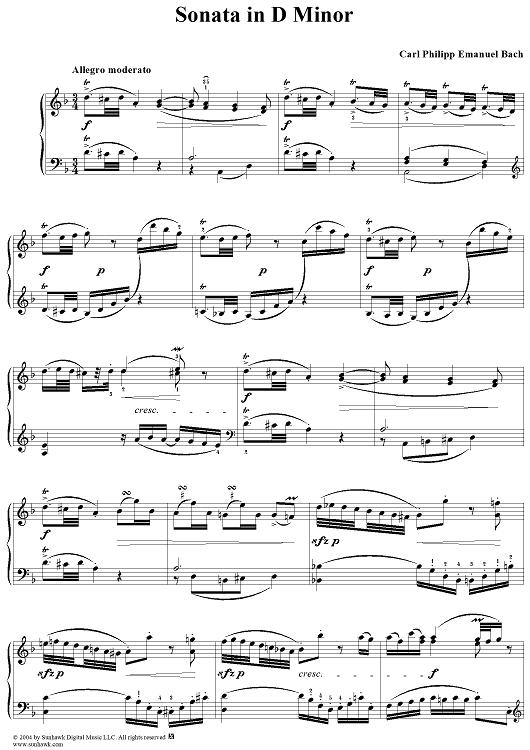 Digital Sheet Music for Sonata in D Minor by Carl Philipp Emanuel Bach scored for Piano Solo; id:303257