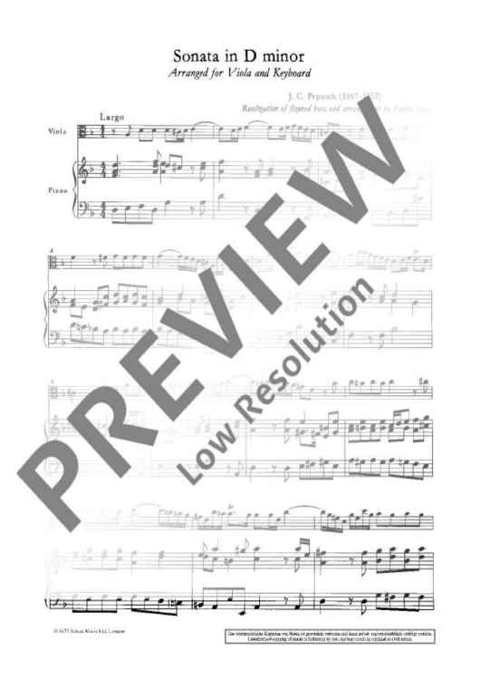 Digital Sheet Music for Sonata in D minor by John Christopher Pepusch scored for Viola And Piano; id:474396