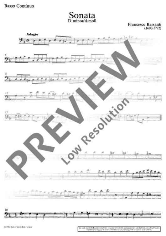 "Sonata in D minor" Sheet Music by Francesco Barsanti
