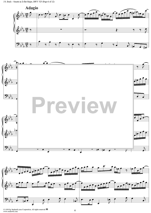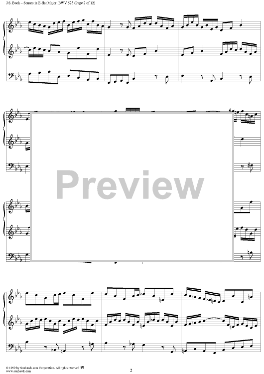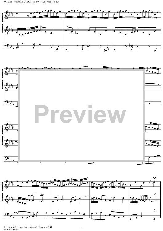 Digital Sheet Music for Sonata in E-flat Major, BWV 525 by Johann Sebastian Bach scored for Organ Solo; id:154863