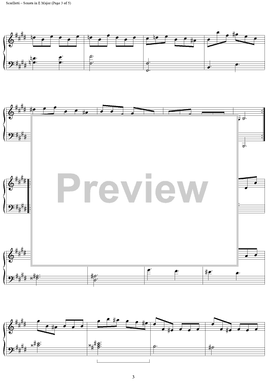 Digital Sheet Music for Sonata in E major (K531/P535/L430) by Domenico Scarlatti scored for Piano Solo; id:257724