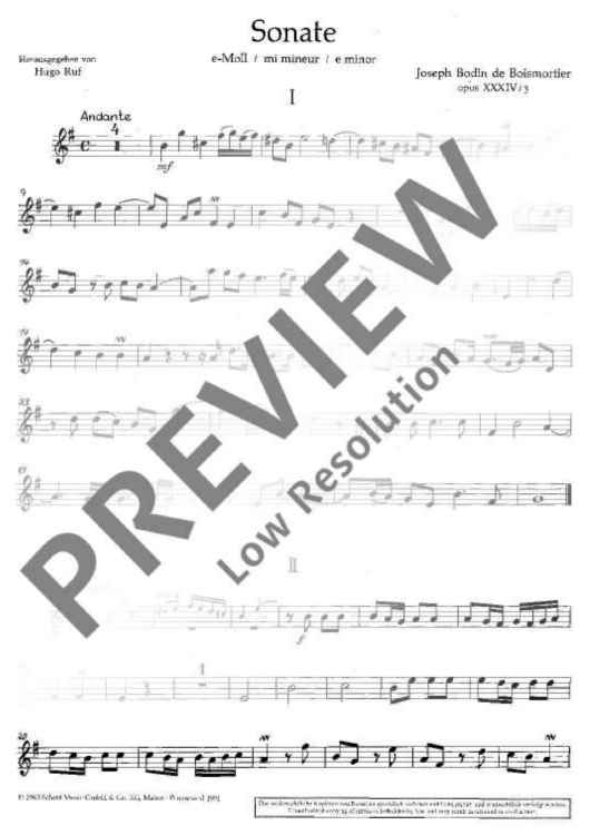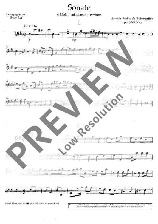 Digital Sheet Music for Sonata in E minor - Set of Parts by Joseph Bodin de Boismortier scored for 3 Melodic Instruments (violins, Flutes, Oboes) Or String Orchestra And Basso Continuo (harpsichord, Piano); Cello (viola Da Gamb; id:487380