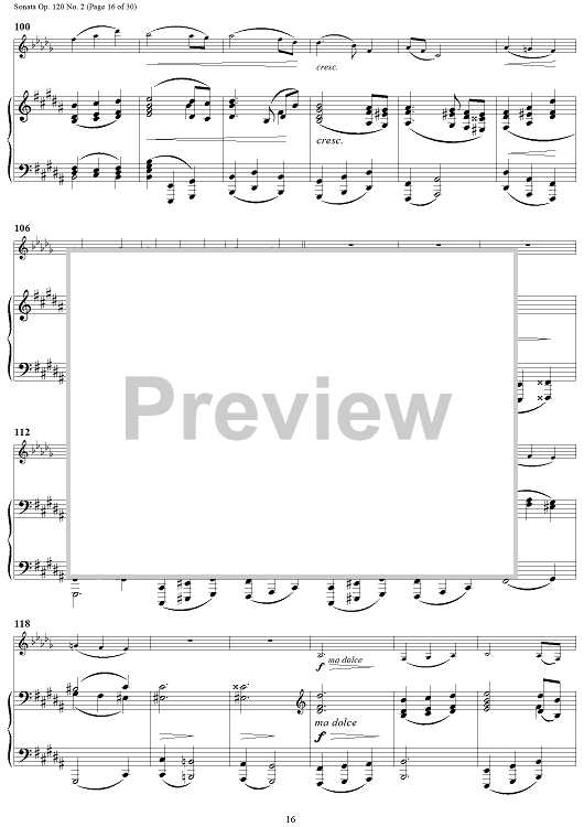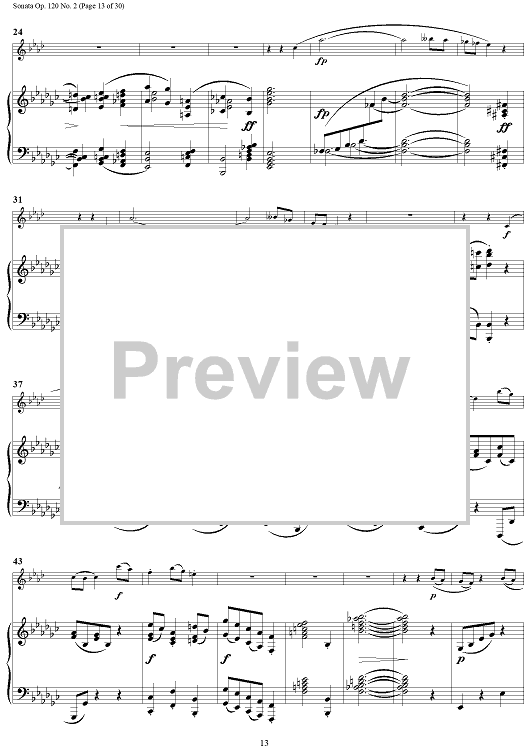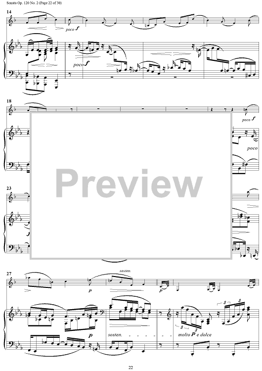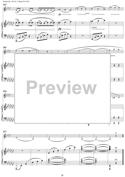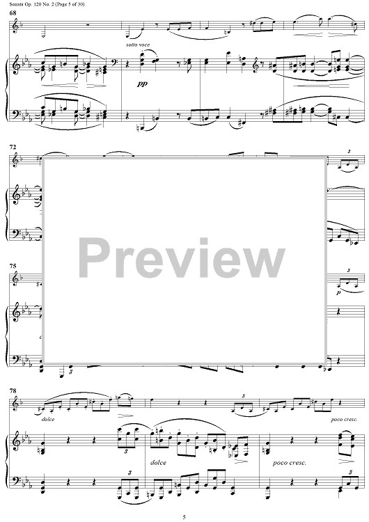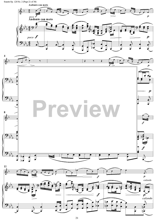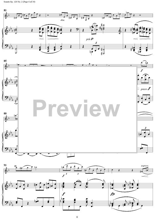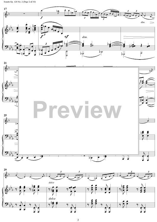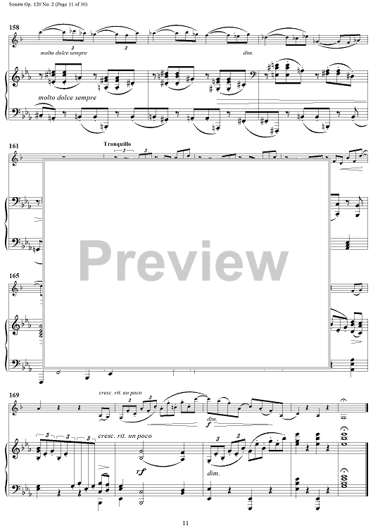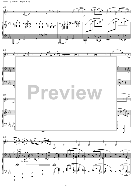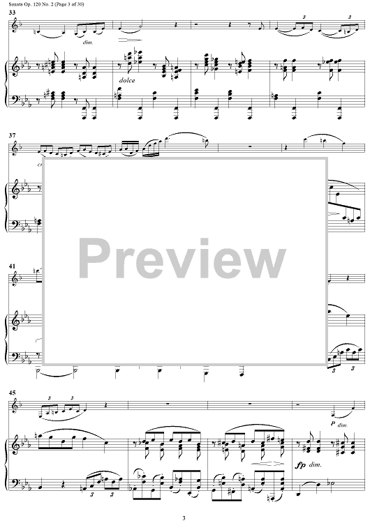 Digital Sheet Music for Sonata in Eb Major, Op. 120, No. 2 - Piano by Johannes Brahms scored for Clarinet/Piano; id:281343