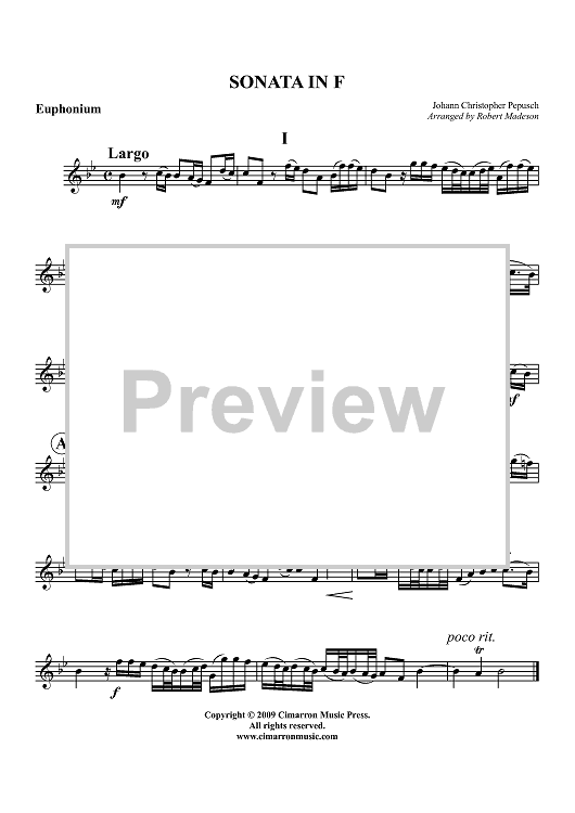 Digital Sheet Music for Sonata in F - Euphonium BC/TC by Robert Madeson, Johann Christoph Pepusch scored for Euphonium/Piano; id:417624