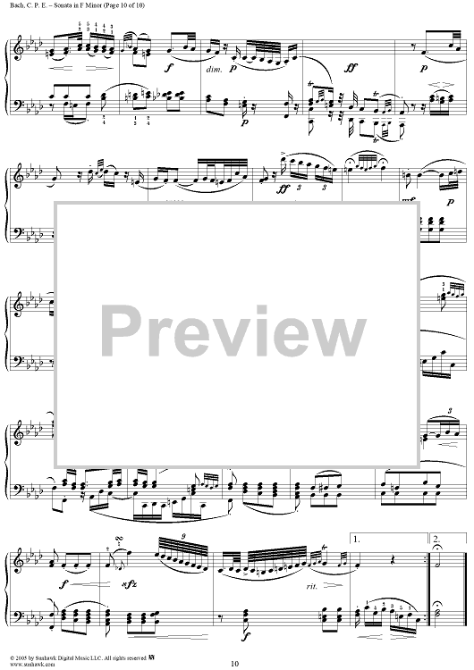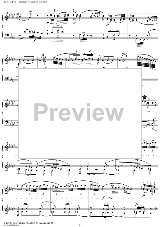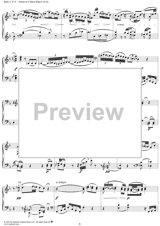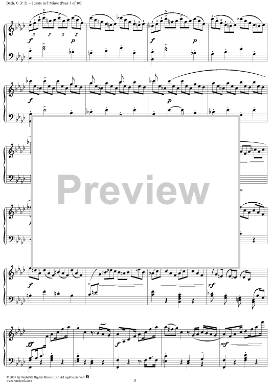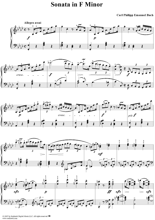Digital Sheet Music for Sonata in F Minor by Carl Philipp Emanuel Bach scored for Piano Solo; id:303253