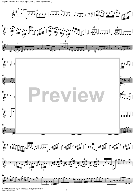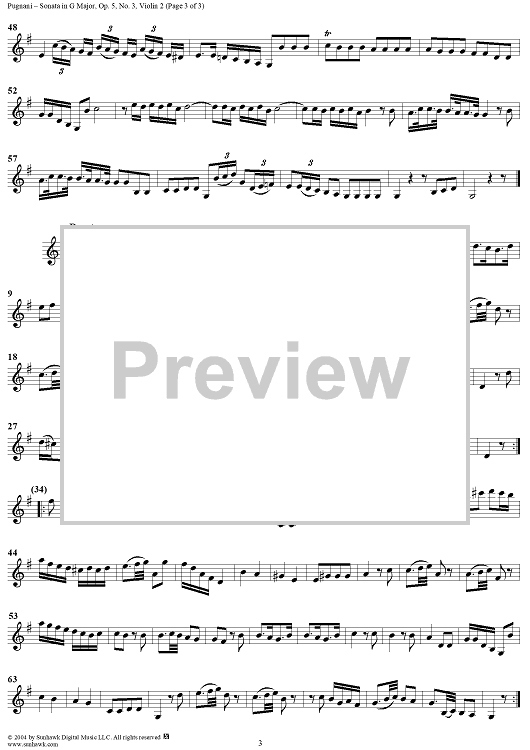 Digital Sheet Music for Sonata in G Major, Op. 5, No. 3 - Violin 2 by Gaetano Pugnani scored for Two Violins; id:303939