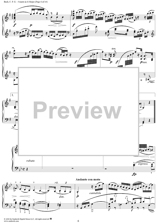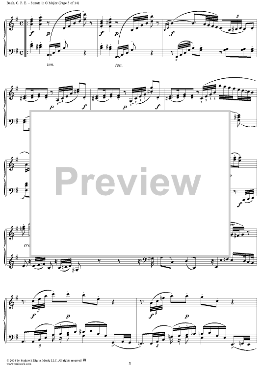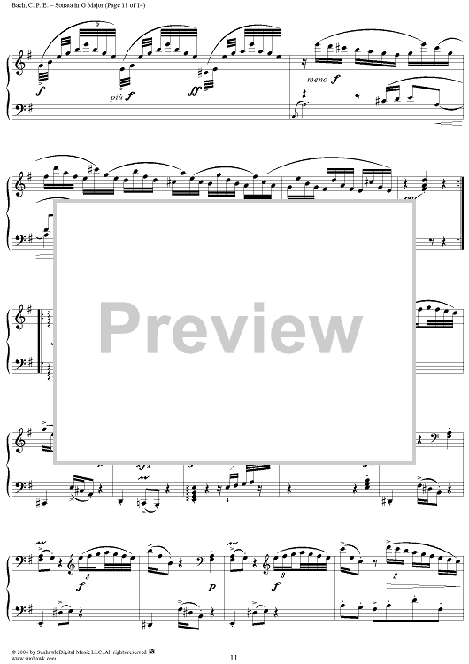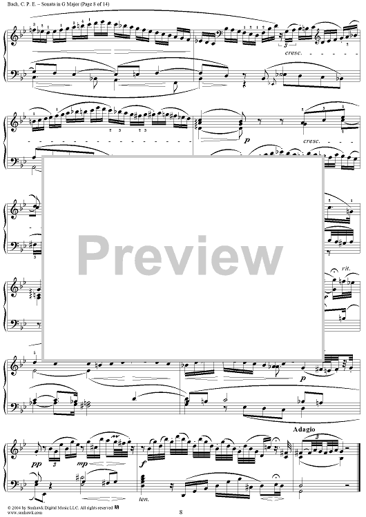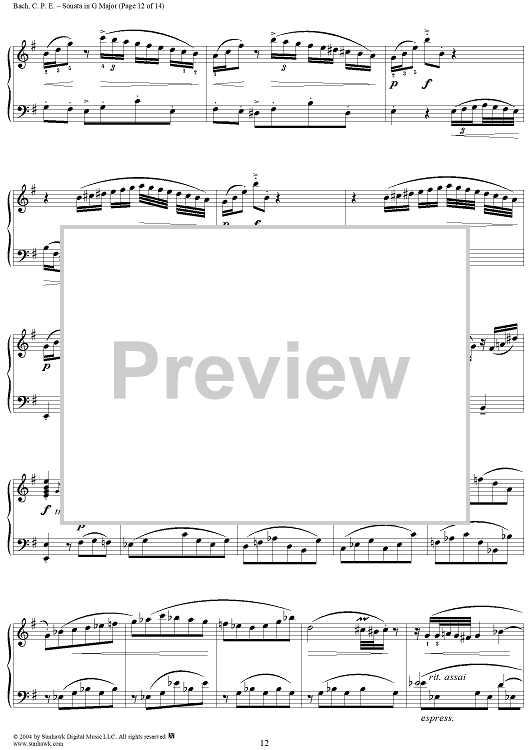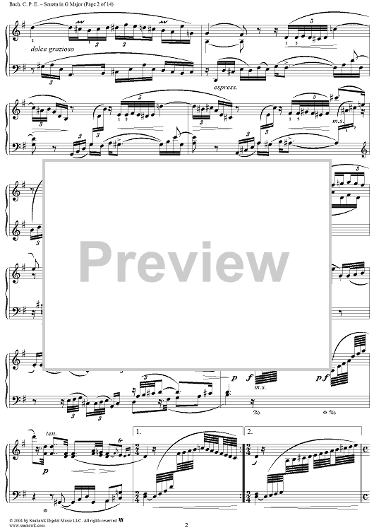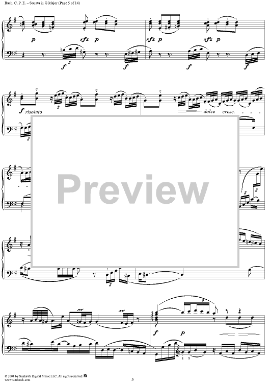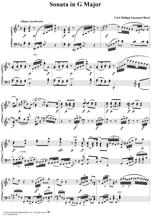 Digital Sheet Music for Sonata in G Major by Carl Philipp Emanuel Bach scored for Piano Solo; id:303256