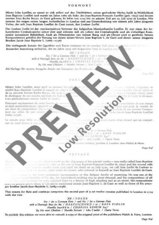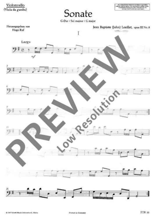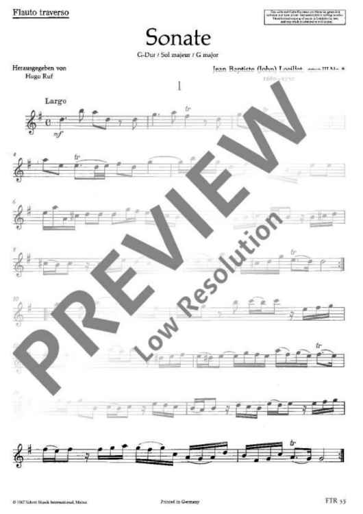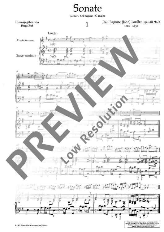 "Sonata in G major" Sheet Music by Jean Baptiste Loeillet
