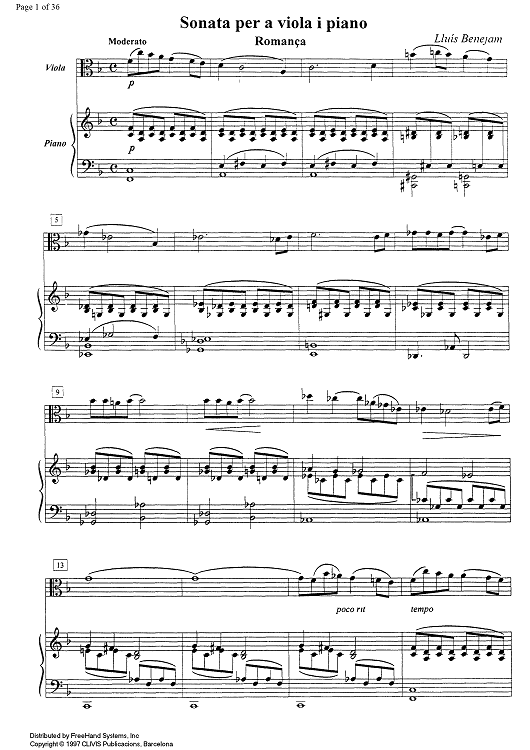 Digital Sheet Music for Sonata (Moments musicals) - Score by , Lluís Benejam scored for Viola/Piano; id:348835
