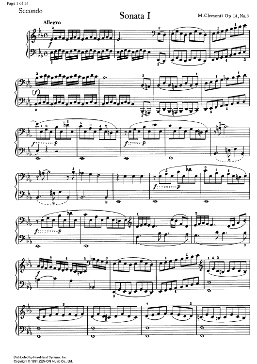 "Sonata No. 1 Eb Major Op.14 No. 3 - Piano 2" Sheet Music by Muzio Clementi