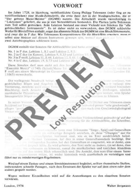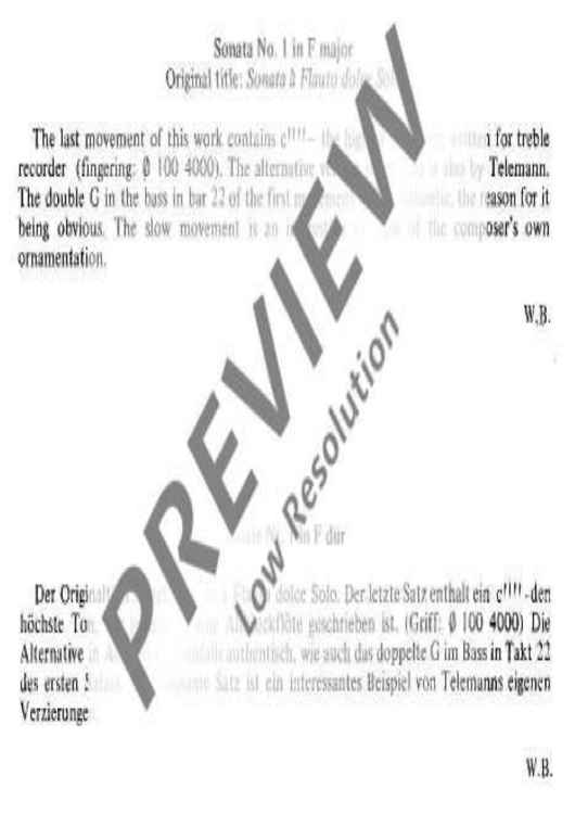 Digital Sheet Music for Sonata No. 1 F Major by Georg Philipp Telemann scored for Treble Recorder And Basso Continuo; Cello Ad Libitum; id:476192