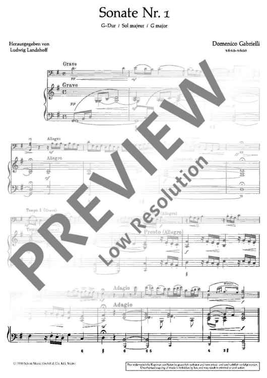 "Sonata No. 1 G Major" Sheet Music by Domenico Gabrielli