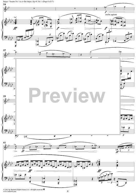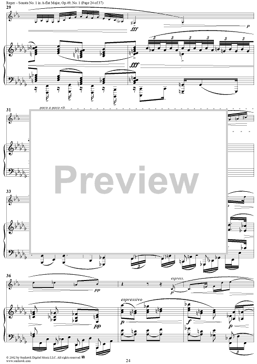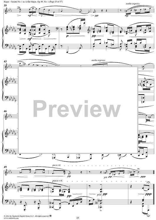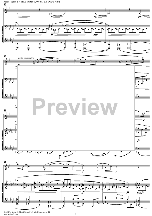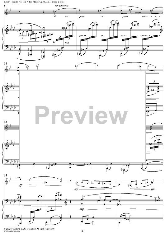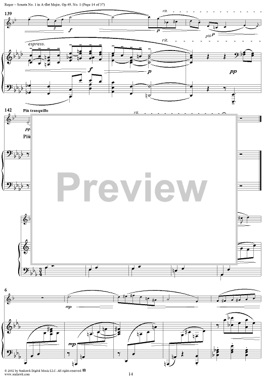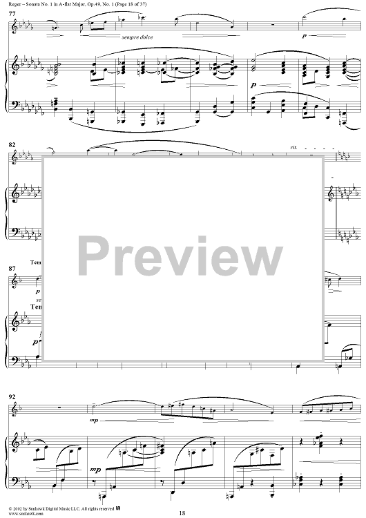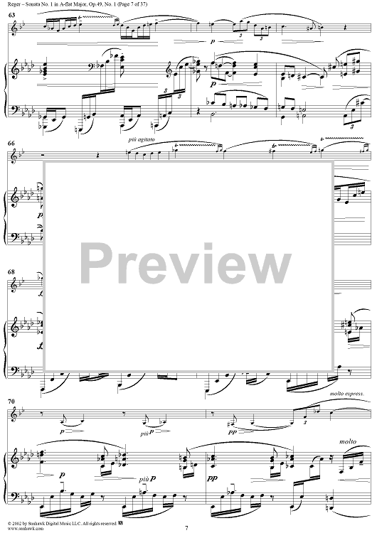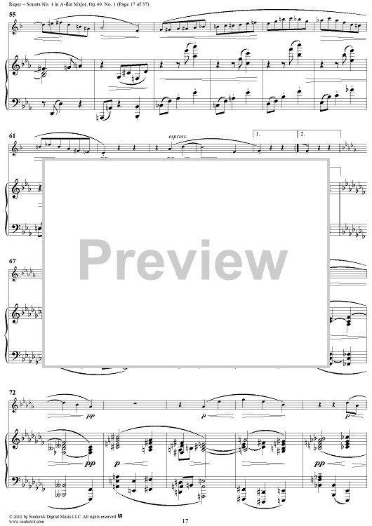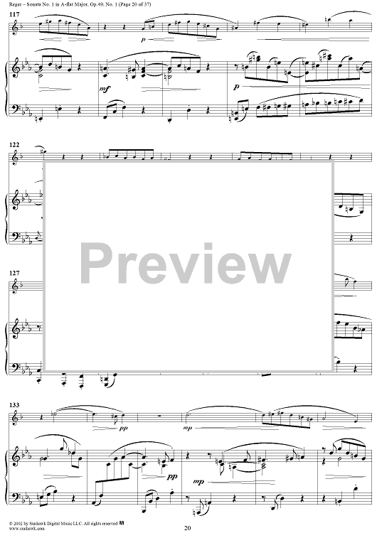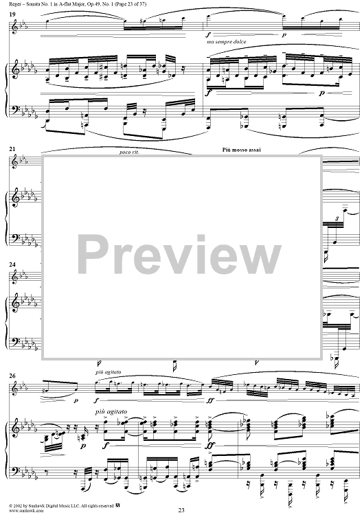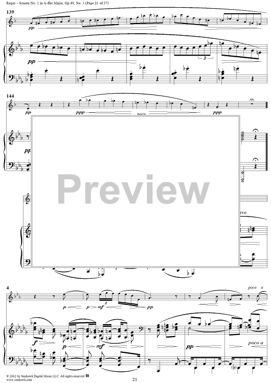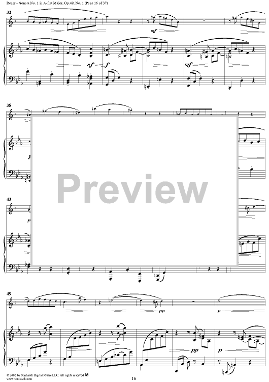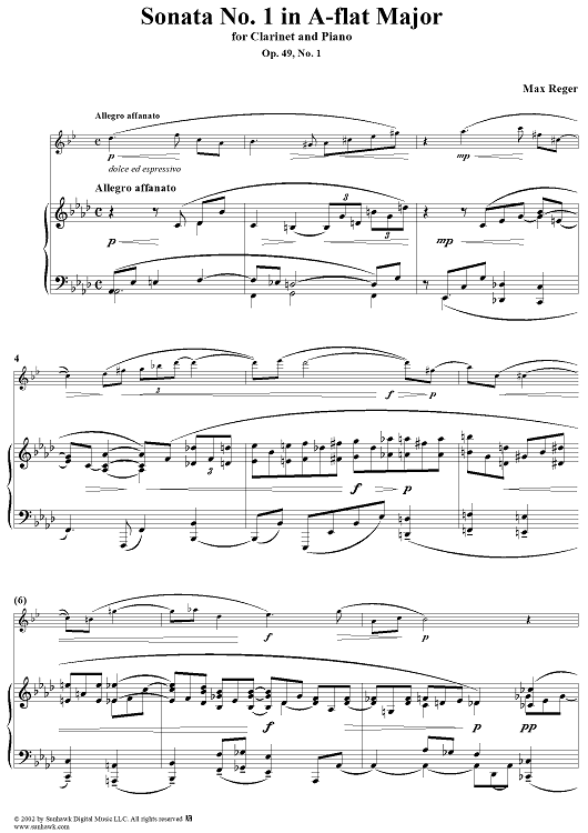 Digital Sheet Music for Sonata No. 1 in A-flat Major - Piano Score by Max Reger scored for Clarinet/Piano; id:285197