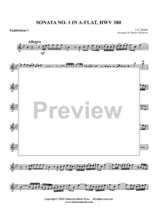 Digital Sheet Music for Sonata No. 1 in Ab, HWV 380 - Euphonium 1 BC/TC by George Frideric Handel, Robert Madeson scored for Tuba Quartet; id:426901