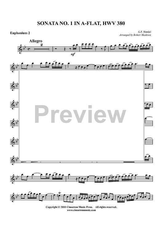 Digital Sheet Music for Sonata No. 1 in Ab, HWV 380 - Euphonium 2 BC/TC by George Frideric Handel, Robert Madeson scored for Tuba Quartet; id:426902