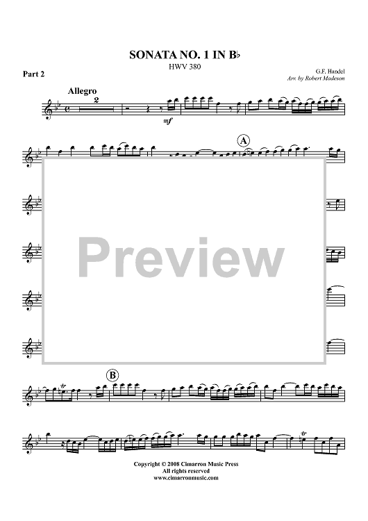 Digital Sheet Music for Sonata No. 1 in Bb (HWV 380) - Euphonium BC/TC by George Frideric Handel, Robert Madeson scored for Trombone/Euphonium Duet with Piano; id:417525